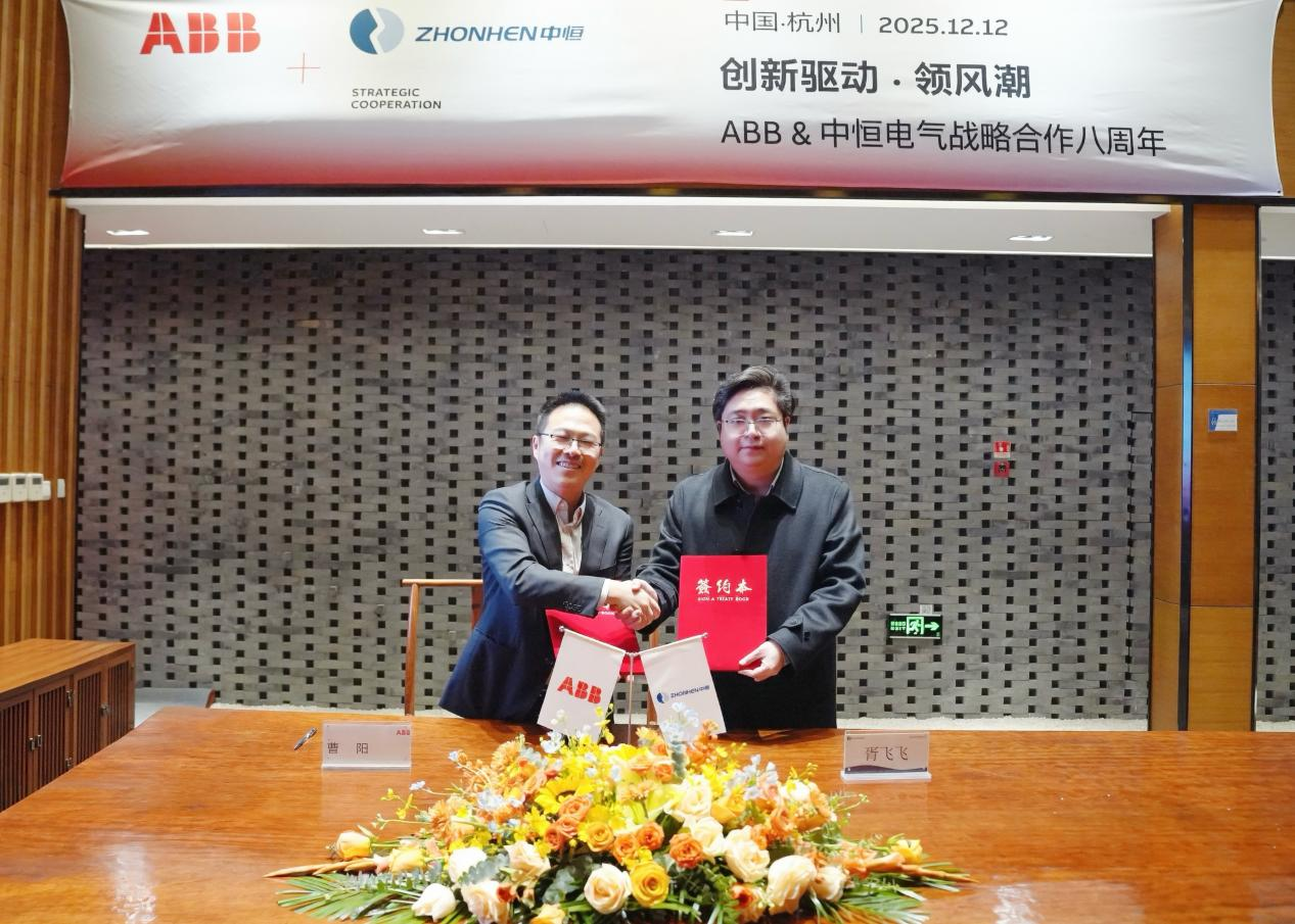 2025年12月12日下午,来利国际旗舰厅(中国)有限公司官网 (以下简称:来利国际旗舰厅)与ABB(中国)有限公司电气事业部(以下简称:ABB)在杭州来利国际旗舰厅总部举办了主题为“创新驱动·领风潮”战略合作八周年签约仪式。